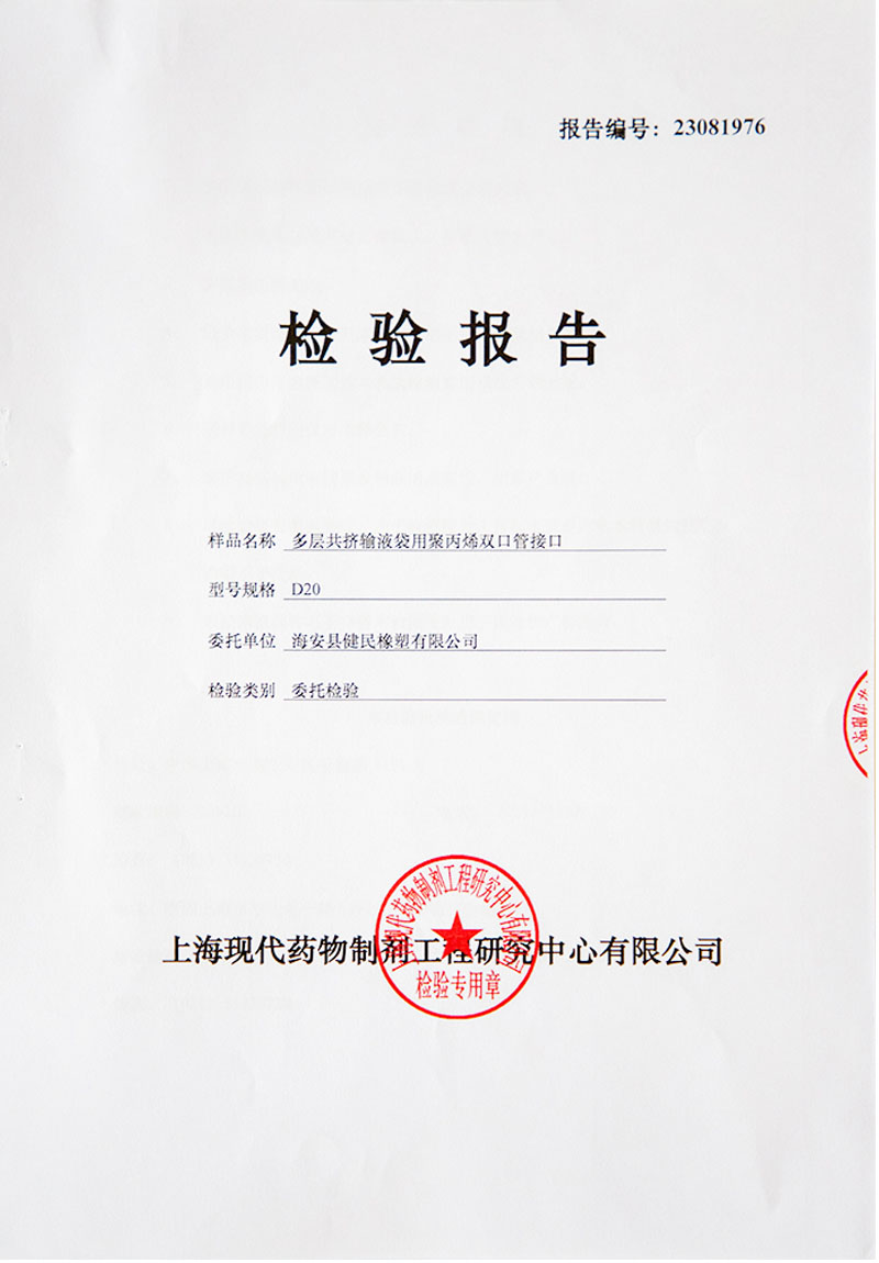 >> 多层共挤输液袋用聚丙烯双口管接口检验报告